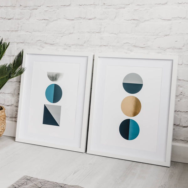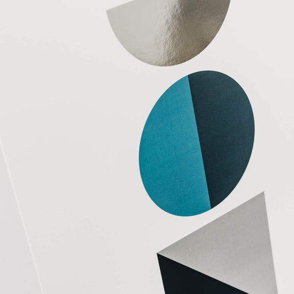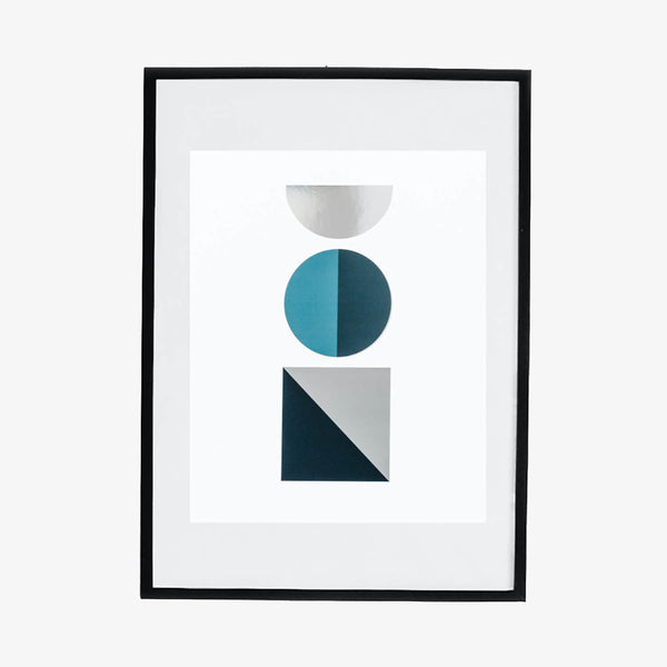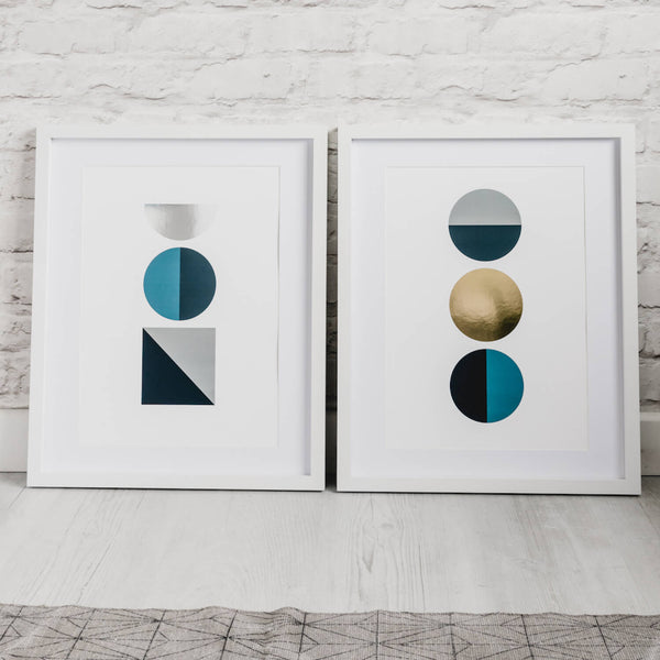 Part of the Matthew Calvin collaboration ‘Union’ with Edinburgh based MAiK, the Union Square Silver foil geometric print will make your walls come alive. The pops of the teal and blues are perfectly complemented by the silver foil. Match it with the Circles Gold Print to get a perfect statement pair for your home.