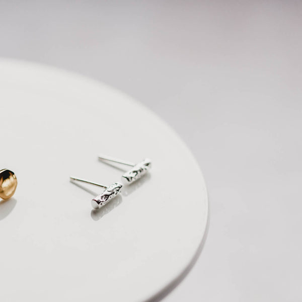 A classic Matthew Calvin design, the Gold Vermeil Small Meteorite Bar Earrings are the perfect option for beautiful, comfortable every day studs. Finished with our signature meteorite texturing which catches the light beautifully, these studs were designed to sit comfortably on the ear, whilst adding a subtle but mighty touch to any outfit.