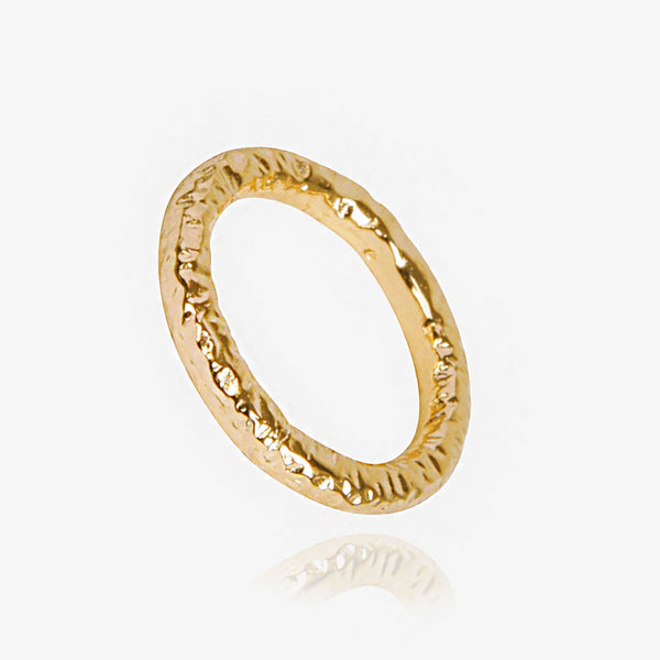 The Meteorite Ring, hand-textured with the same unique hammering technique that's seen throughout the rest of the Meteorite collection, catches the light beautifully. Designed for mixing and matching with other styles and colours, we love stacking the Meteorite Ring with it's little sister, the Thin Meteorite Ring.