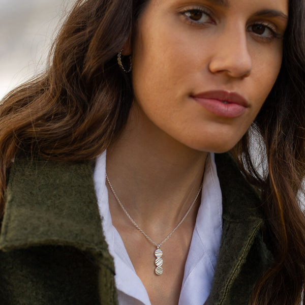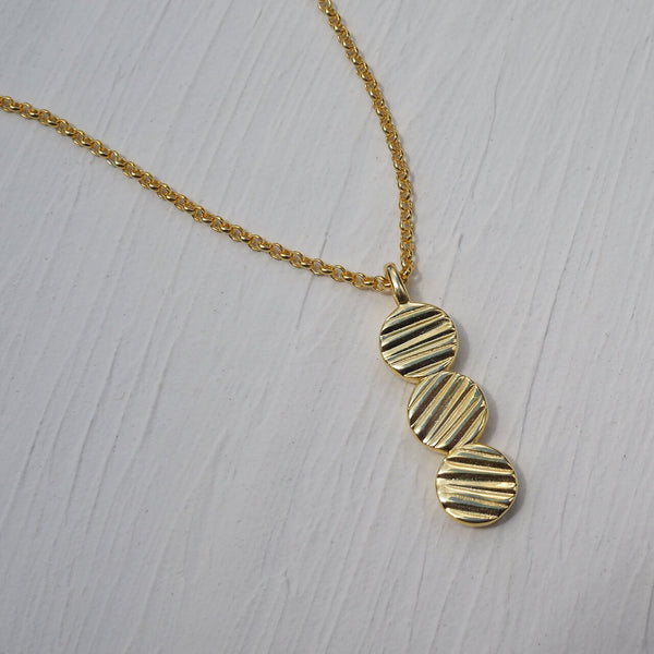 Paired with a delicate belcher chain, the Origins Trio Necklace creates a distinctive base layer for your neckline. The unique textured triple pendant, inspired by Matthew Calvin's original experimental designs, explores the juxtaposition of textures alongside high-polish finishes. Shine solo, or layer for a standout look.