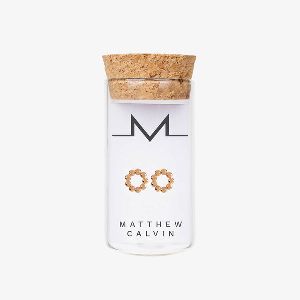 A simple style, the Rose Gold Vermeil Beaded Studs catch the light beautifully. Intricately formed beads formed into a perfect circle, the Beaded Studs have a high-polish finish. A delicate, dainty style, the Beaded Studs add a subtle glint of rose gold to your look.