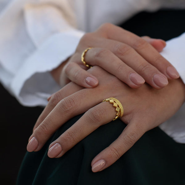 Designed to be stacked, the Doru Band Ring is the perfect companion to other Matthew Calvin rings. Inspired by the brand’s original experimental designs, the Origins collection explores the juxtaposition of textures alongside high-polish finishes, and the Doru Band Ring is no exception. Featuring a curved inner band for comfort, the Doru Band Ring is quickly becoming a jewellery staple that you won’t want to take off.