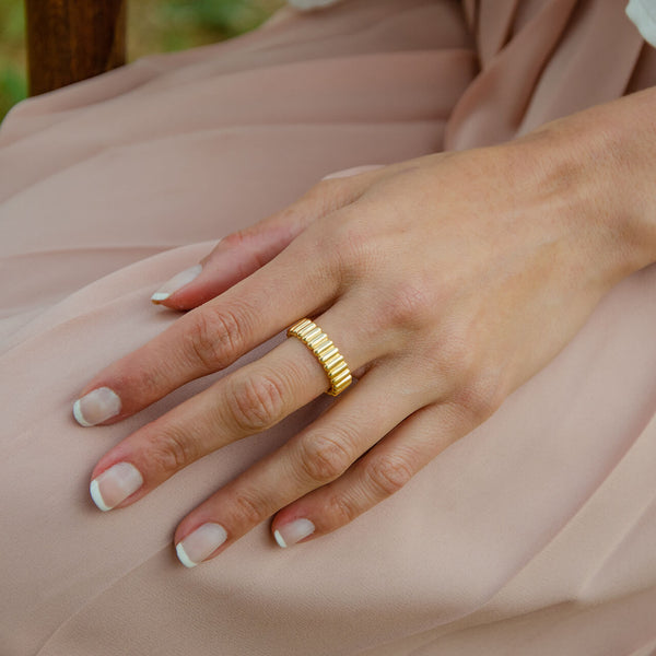 A satisfyingly endless design, the Hitch Ring features back-to-back high polish capsules. Wear this distinctive chunky ring solo, or style with other more delicate pieces from the Shore Collection to create contrast.