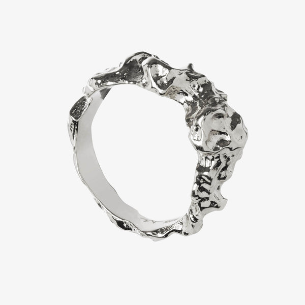 The Sterling Silver Meteor Ring’s unusual texturing catches the light beautifully; hand-textured with the same unique hammering technique seen throughout the rest of the collection. A statement piece, the Meteor Ring draws attention from all around, but with its tapered sides and back, is incredibly comfortable to wear.