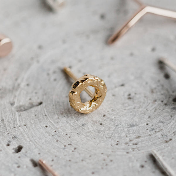 One of our favourite styles for everyday wear, these studs are dainty and unobtrusive. With our signature meteorite texturing, these classic, circular studs catch the light beautifully. Small enough to wear in second piercings, pair these studs with a pair of our Meteorite Hoops for the ultimate celestial look.