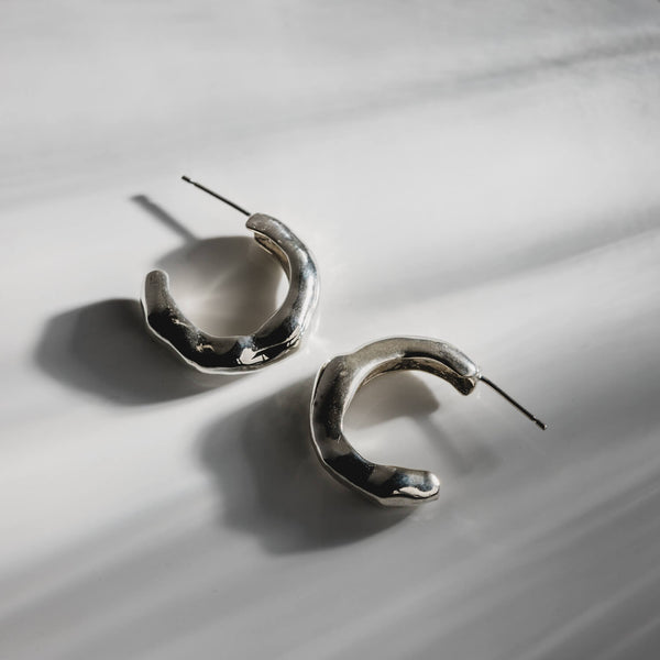 Loved best for their chunky aesthetics, the Rocha Hoops have been subtly hollowed out on the inside, ensuring that despite their size, they are incredibly comfortable to wear. A staple piece, the Rocha Hoops have been a customer favourite since their launch. The Sterling Silver Rocha Hoops have been hand-carved with an organic texture, but finished with a high-polish shine to create the perfect minimal yet eye-catching look.