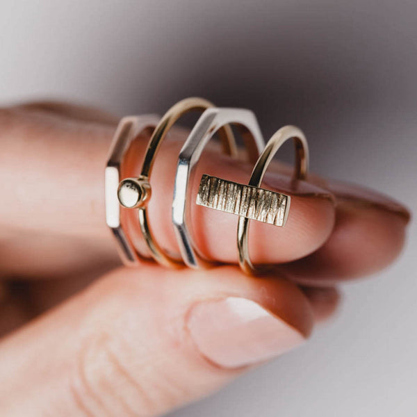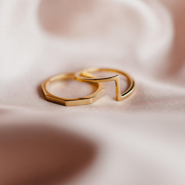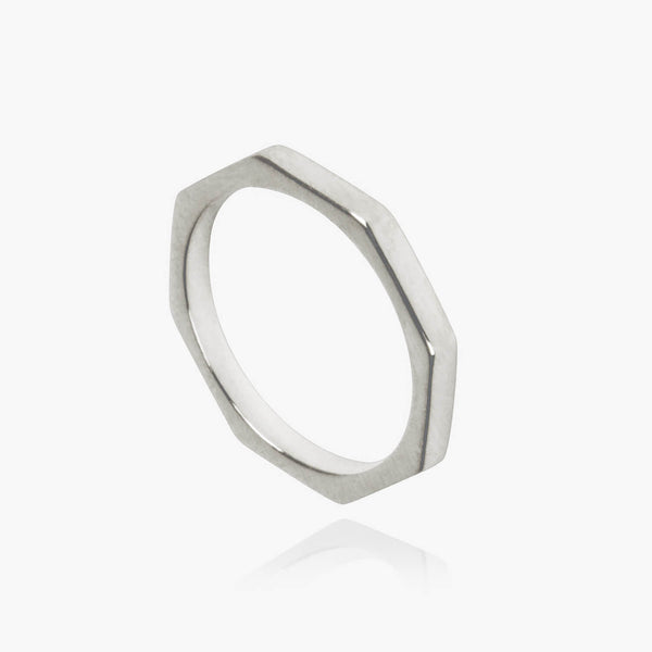 A classic, geometric shape, the Octagon Bolt Ring was designed in Matthew Calvin's signature minimalist style. This high polish stacking ring is perfect for those of you that love minimalism, but want eye-catching, statement-making pieces.