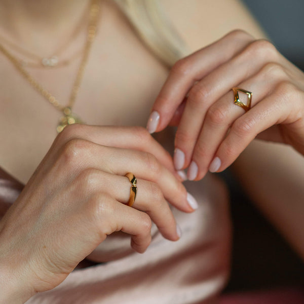 The Deca Ring's chunky, minimal design recalls Art Deco architectural features and 1930's glamour.