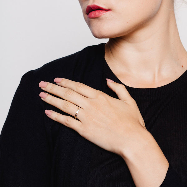 The Lightweight Allied Ring, available in Sterling Silver, Gold and Rose Gold Vermeil, uses a special hand-finishing technique to create its' unique but subtle hand-textured lines. Stunningly simple, and perfect to stack, the Lightweight Allied Ring is a staple, minimalist design.