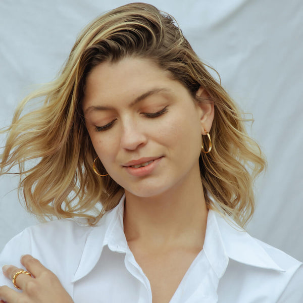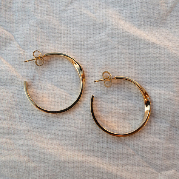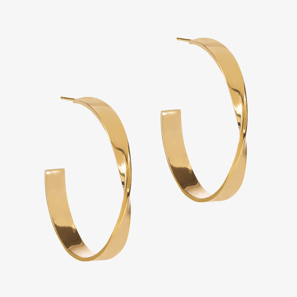 Gently twisting in the classic Mobius shape these hoops are finished with a high polish and catch the light from all angles, creating an unbeatable shine. The larger of two sizes, the 28mm Mobius Hoops are perfect for making a minimalist statement.