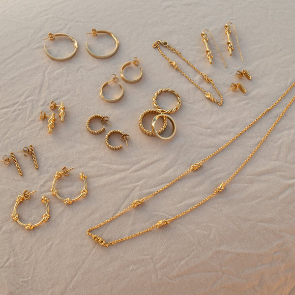 Inspired by the seaside and sailing, the Shore Collection’s versatile pieces include intricate knot charm details complimented by high polish finishes and organic textures. Growing up in Barcelona, many of Matthew’s childhood memories involve the sea and bring about fond memories of being by the water. Classic Mobius shapes twist delicately in both rings and hoops, reminding us of the gentle ebb and flow of the tide. The pieces which can be worn all year round are available in both Sterling Silver and 18ct Gold Vermeil.