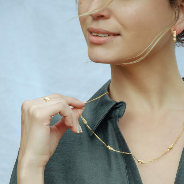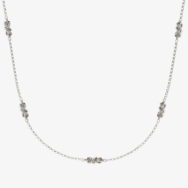 Assembled from a high-polish belcher chain and five intricately beautiful knots, the Shore Charm Necklace is a simple, minimal design. Reminiscent of rustic old timers - ropes passed down through generations and knots that have been used for centuries, the Shore Charm Necklace is a classic piece that will be worn for years to come.
